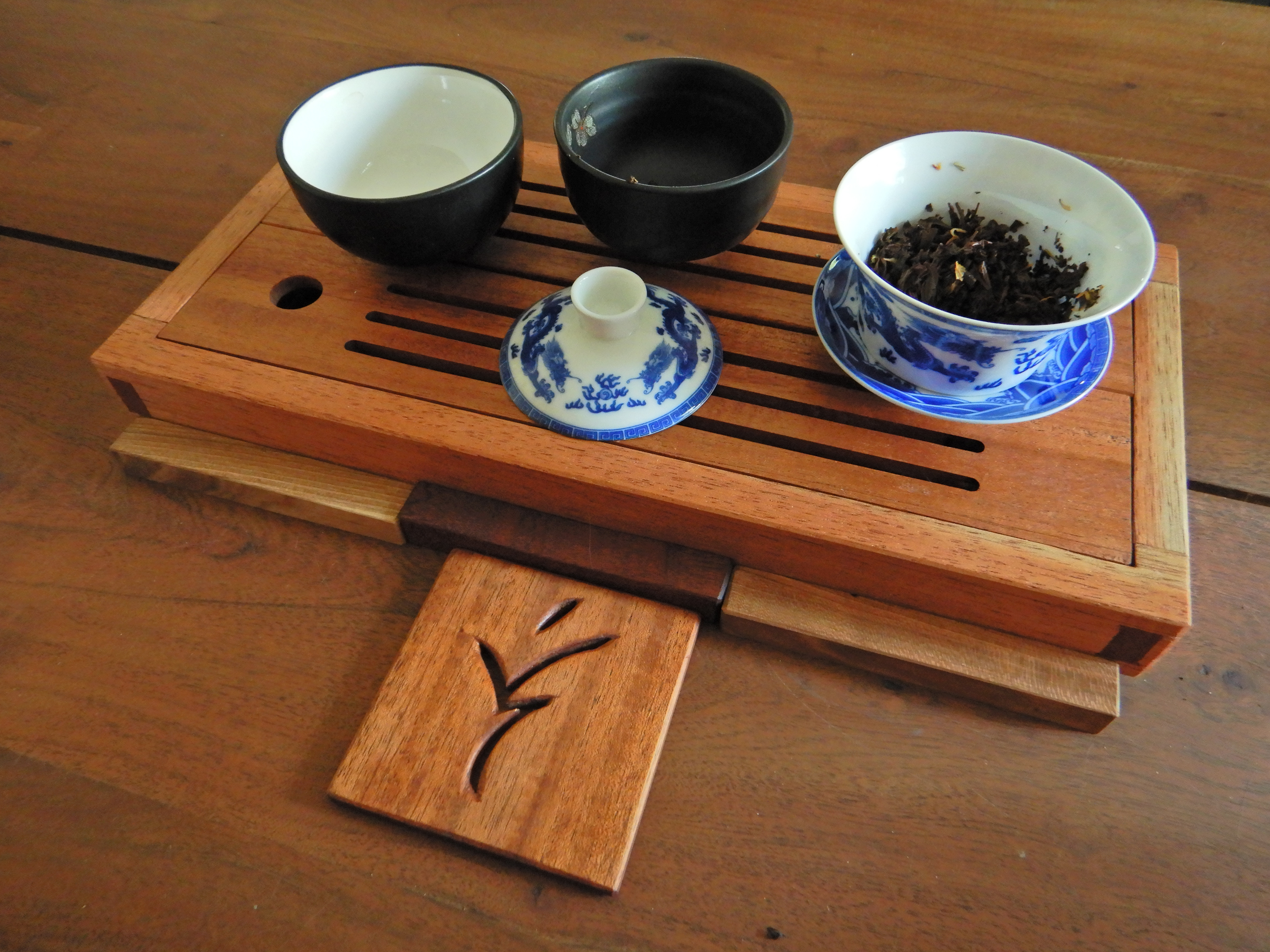 Petite table à café. Idéale pour les conversations longues. Même hauteur que la plupart des bras des fauteuils modernes. Les queues d'arondes faisant office de visuel sur l'assemblage principale.